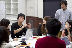| ゼミで熱い討論を交わす(武蔵大学) |
