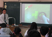 5年1組理科「電流が生み出す力を調べよう」(浜宗伸教諭)では、児童が電磁石づくりに取り組む。エナメル線の巻き方や削り方といった実技指導では、教員が実際に作業している手元を実物投影機で大きく提示した。その様子は同時録画され、児童が作業する間は黒板上で再生。教員は机間巡回しながら丁寧に指導していた。