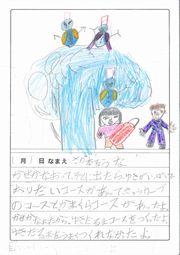 当初は絵日記の題材は京谷教論が決めていたが、少しずつ書く力がつき、題材を自由にしたところ、絵日記の内容、文章量共に大きな変化が出できた。そこで、2学期後半からは絵日記用のノートを作った。