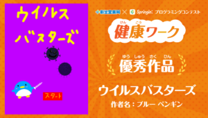 株式会社しくみデザインは、ビジュアルプログラミングアプリ「Springin'(スプリンギン)」を使ったプログラミングコンテストを、新生堂薬局の協賛で実施。「健康」をテーマにしたプログラミングコンテストで、感染対策やウイルスの特性をまとめた絵本や、ウイルスを注射や薬で撃退するシューティングゲームなど、様々な視点で考えた作品が寄せられた。