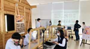 阿南高専生が建設した木造仮設住宅をオンラインで見学する。