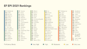 「EF EPI英語能力指数」は、EFがオンラインで無料公開している英語力測定テスト。「EF SET」(エフセット)の前年受験データを元に、非英語圏の国・地域における英語能力を、経年的に計測・追跡するベンチマークとして2011年より毎年秋に発表されている。