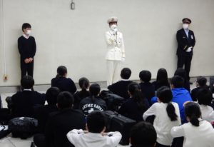 出発式には6校の代表生徒が参加。はじめに関東地区公立中学校修学旅行委員会を代表して運営委員長である千葉県浦安市立日の出中学校の鳩岡和則校長が「修学旅行のシーズンがはじまるにあたり、出発式を行えることを大変うれしく思います。まだ感染症の心配はありますが、生徒の皆さんは健康に気をつけて実りある修学旅行にしてください。これから皆さんは学校では味わえない貴重な体験をして仲間と楽しい思い出を作ってきてください」と言葉を贈った。