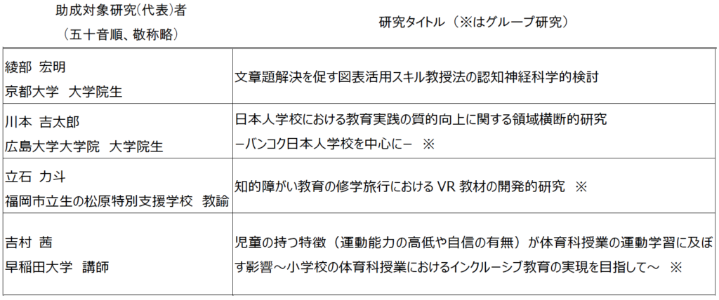 公財・博報堂教育財団は2月24日、第18回「児童教育実践についての研究助成」の助成対象16件を発表した。本助成は、「ことばの力」を育む研究と児童教育実践の質の向上を目的に、大学、研究機関および教育実践者を対象にすぐれた研究を助成するもの。今回の応募総数は79件。助成対象者は、4月1日から1年間または2年間の研究助成を受け、研究成果を報告書にまとめて成果発表会で発表する。