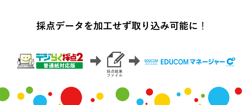 EDUCOMは9月29日、統合型校務支援システム「EDUCOMマネージャーC4th」と、普通紙(コピー用紙)に印刷した解答用紙を使用して採点が可能なソフトウェア「デジらく採点2普通紙対応版」が機能連携したことを発表。これにより、採点データを加工することなく「C4th」に取り込めるようになり、教員の作業時間短縮に貢献する。