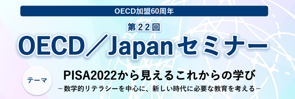 第22回セミナーでは、昨年12月に公表されたPISA2022の結果について、国際比較を通じた日本と各国の特色や、経年比較を通じた課題の推移など分析結果について報告するとともに、その結果から見える日本の教育の現状と課題、今後の方向性について議論する。