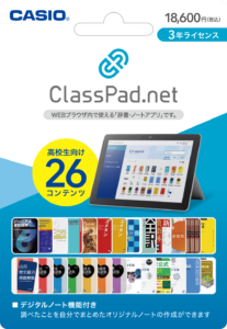 カシオ計算機は、辞書や単語集、用語集、参考書といった教材やデジタルノート、数学ツールなどを搭載したICT学習アプリ「ClassPad.net」のライセンスを、POSA(※1)カードとモバイルPOSAで3月15日より販売を開始する。