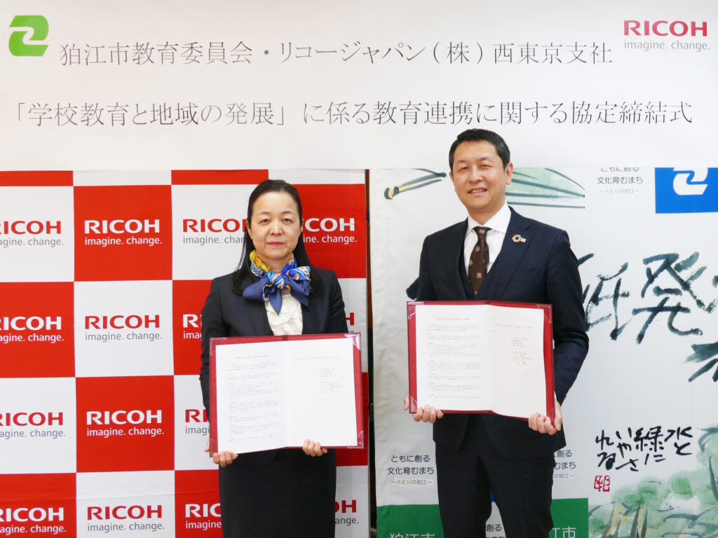 狛江市教育委員会(東京都)とリコージャパンは3月18日、学校教育と地域の発展を目的に、綿密な相互連携と協働による活動を推進し、学校教育と地域の課題解決を図るための協定を締結した。