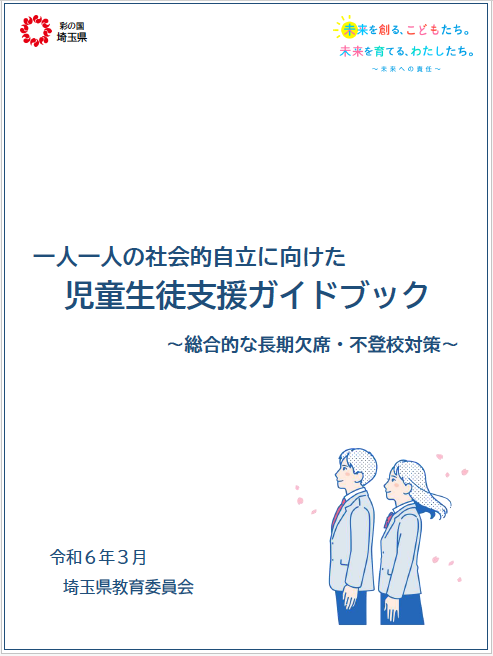 県では、本ガイドブックをさいたま市を除く県内公立の小学校・中学校・義務教育学校・高等学校・特別支援学校に配布し、教職員の校内研修資料、教職員の日常的な対応の手引きなどとして活用してもらうこととしている。