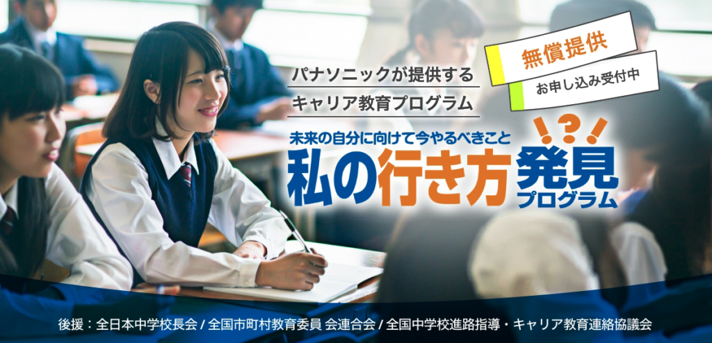 パナソニックグループでは、中学生向けのキャリア教育プログラム「未来の自分に向けて今やるべきこと〜私の行き方発見プログラム」の2024年度の申込を受け付けている。