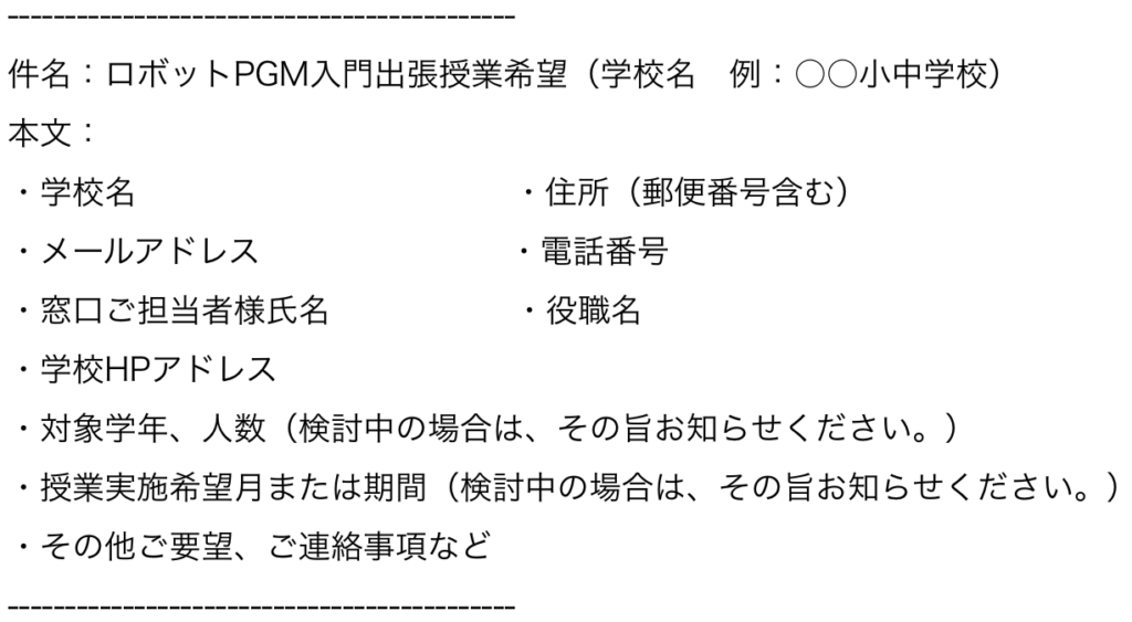 ※宛先:三菱総研DCS株式会社 ロボット特別授業担当