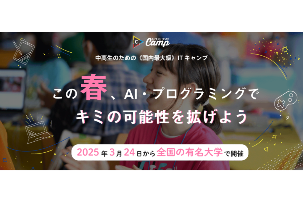 ライフイズテックは、3月24日〜4月6日の期間、中高生向けプログラミング・AIキャンプ「Life is Tech ! Spring Camp 2025」を開催する。