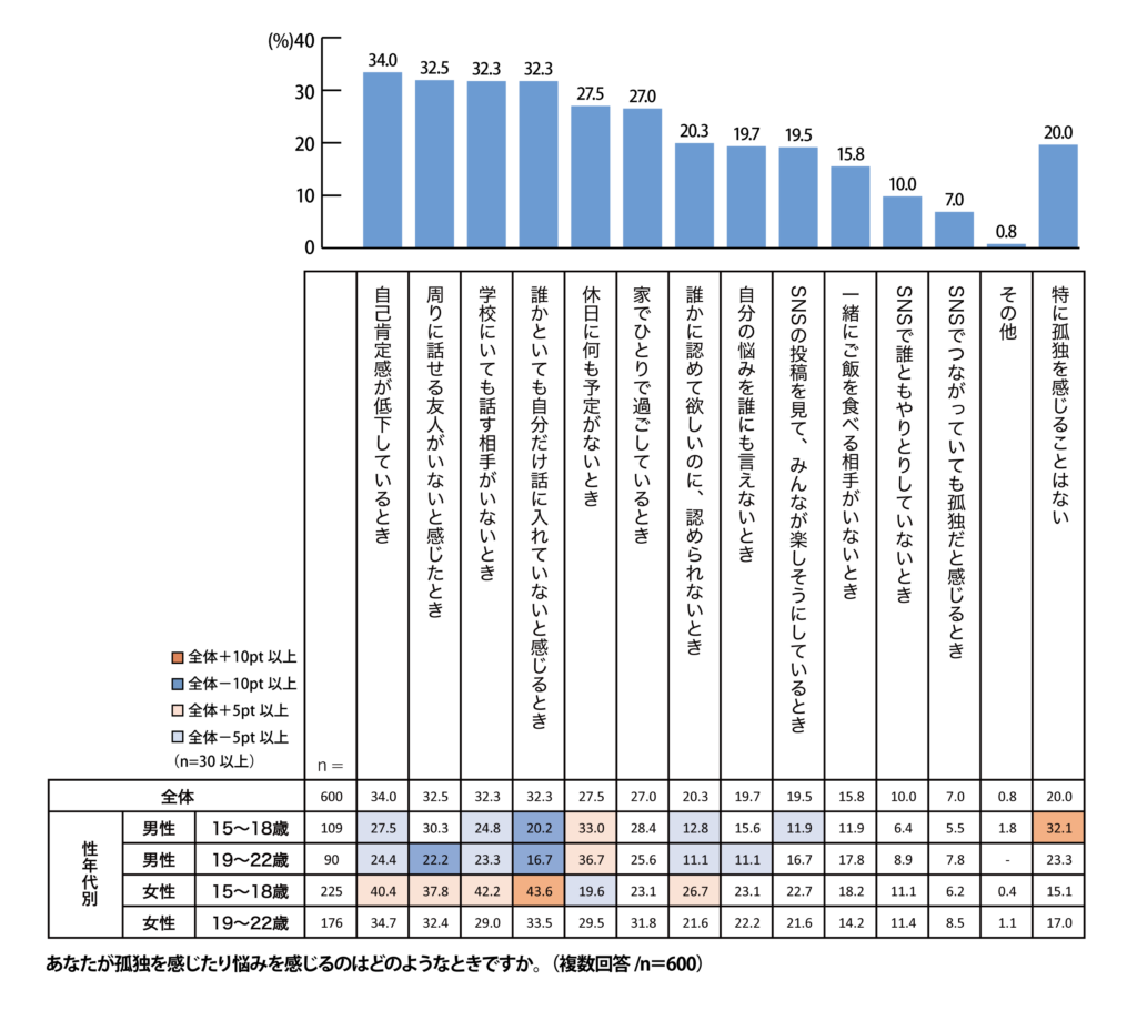 あなたが孤独や悩みを感じるのはどのようなときですか。(複数回答/n=600)