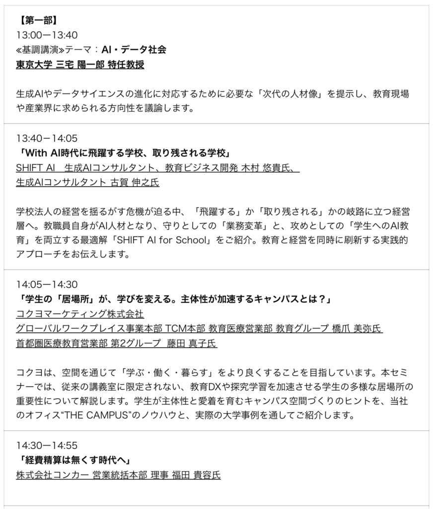 AI・デジタル技術が社会を変革する現代において、「技術力」と「人間らしさ」の両立が求められている。本セミナーでは、教育に必要な未来力を、2部構成で多角的に掘り下げる。参加無料。