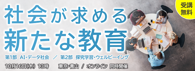 先端教育機構は、教育現場の未来を見据えたセミナー「社会が求める新たな教育」を、10月16日にハイブリッドで開催する。