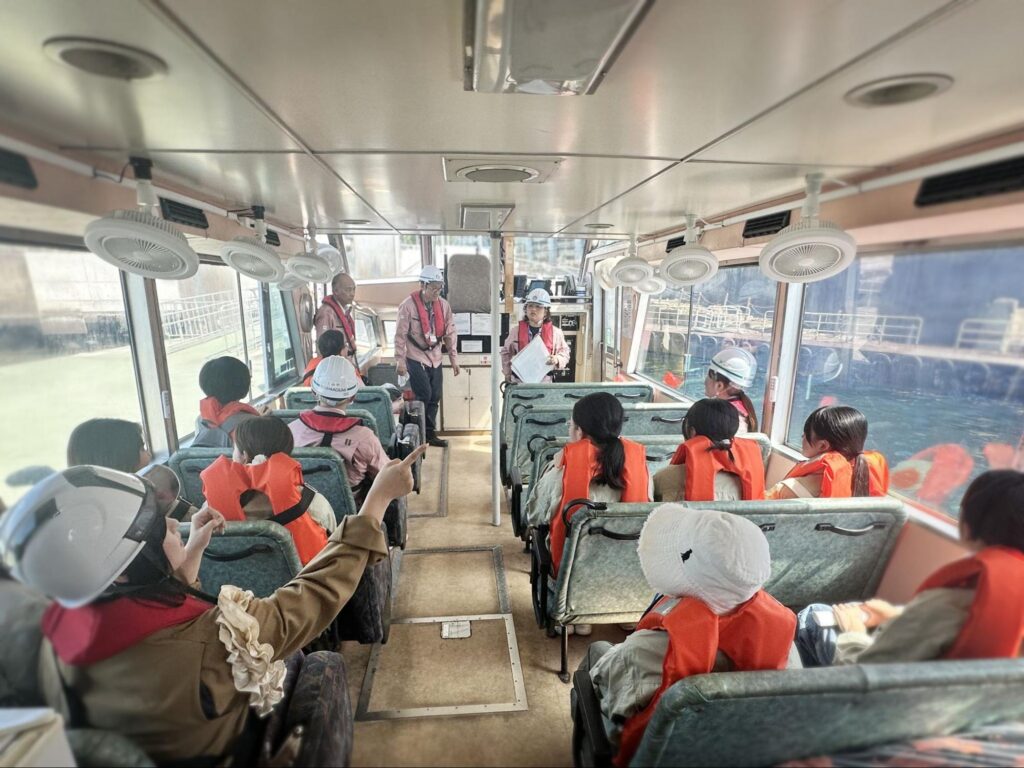 名古屋港で普段は入れないグラブ浚渫船を見学。船内生活や施工デモを体験し、女性技術職員との対話を通じて港湾土木の魅力に触れた。