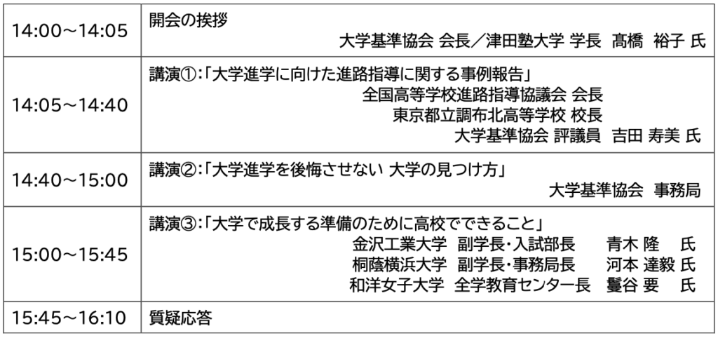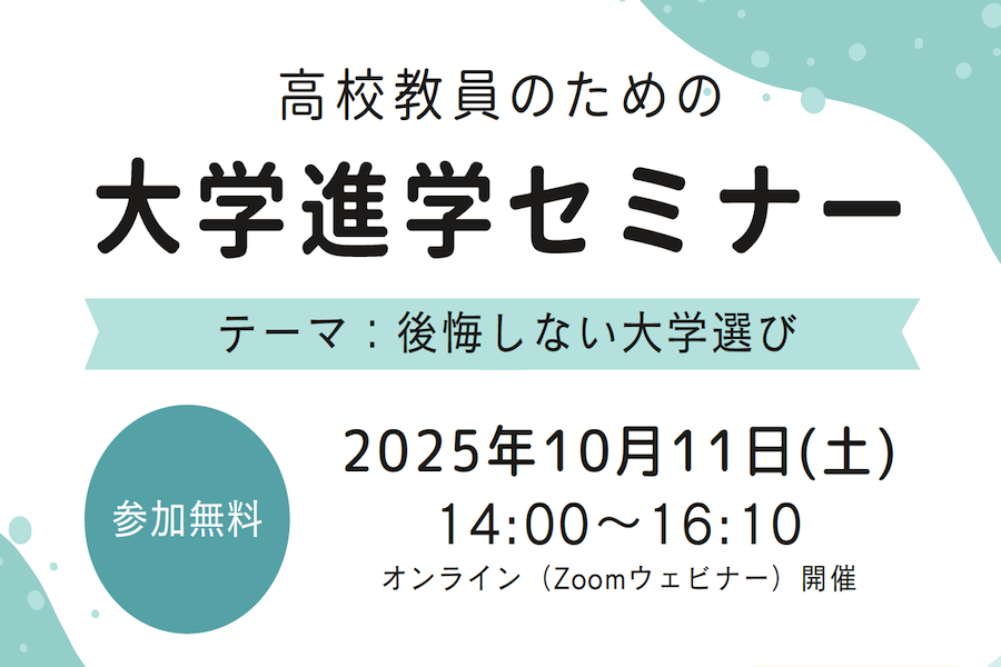 大学基準協会は10月11日に、高校教員を対象にした大学進学セミナー「後悔しない大学選び」を、オンラインで開催する。参加無料。