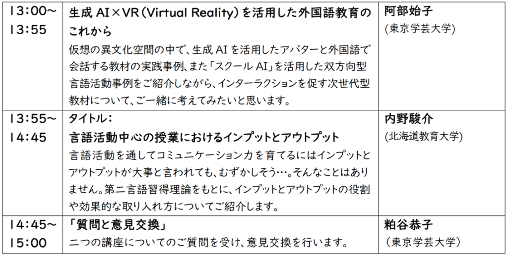東京学芸大学で小・中・高の英語教員養成に関わるメンバーで構成される「小学校英語プロジェクト」は11月1日に、小学校英語研修をオンラインで開催する。小学校で外国語活動・外国語を担当している現職教員が対象。今回のセミナーでは、「生成AI」を活用した外国語学習と、インプットとアウトプットに着目した言語活動の指導について取り上げる。受講料2,200円。