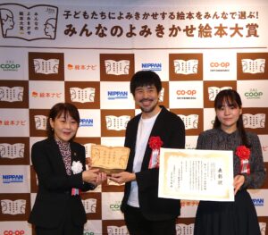 両部門で1位に輝いた大賞には表彰状と記念品として木製トロフィー、副賞として20万円が贈呈された。今後、関連イベントも順次実施予定。全国の書店で受賞絵本のコーナー展開なども予定している。また、同賞は隔年開催となるため、第2回「みんなのよみきかせ絵本大賞」は2027年からエントリーを開始する。