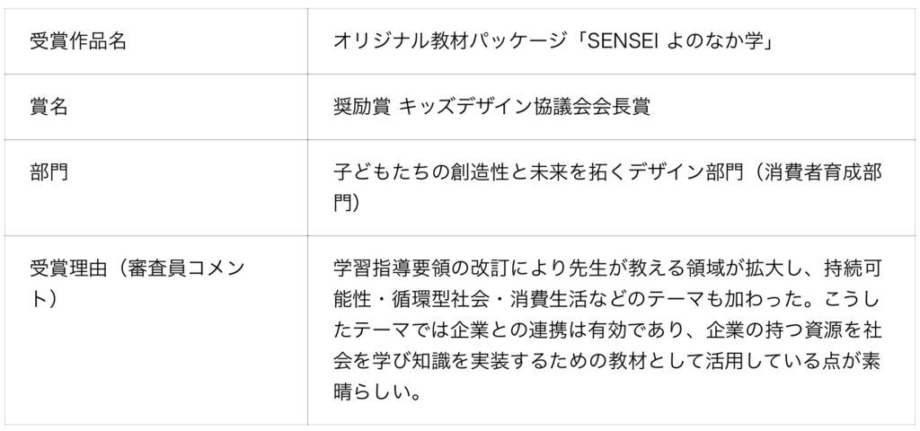 ARROWSは10月6日、同社が提供する学校授業用教材パッケージ「SENSEI よのなか学」が、第19回キッズデザイン賞において、「子どもたちの創造性と未来を拓くデザイン部門」の奨励賞を受賞したと発表。