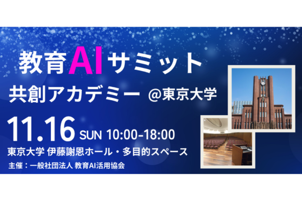 一社・教育AI活用協会は11月16日に、東京大学 伊藤国際学術研究センター・伊藤謝恩ホールにおいて、「教育AIサミット ~ 共創アカデミー@東京大学」を開催する。