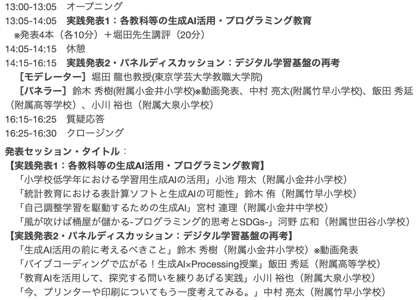 東京学芸大学附属学校情報教育部は12月14日に、「GIGAスクール構想とデジタル学習基盤」と題した公開セミナーを開催する。オンラインと対面(附属竹早小学校)のハイブリッド開催。同学の4附属小学校・中学校・高校の実践発表は、今年度のセミナーが初となる。参加無料。