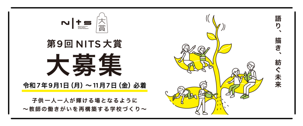 独立行政法人教職員支援機構(NITS)は、学校をとりまく課題の解決に向けた取組を広く募集し、表彰・公開することで優れた実践例を普及する「第9回NITS大賞」を実施。11月7日までエントリーを受け付けている。