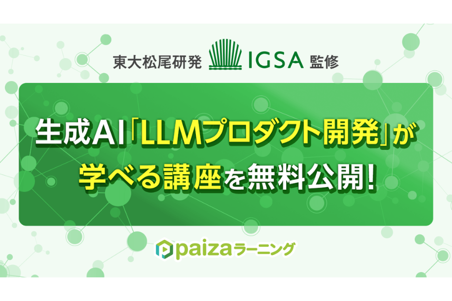paizaは、東京大学松尾研究室発スタートアップのIGSA監修のもと、生成AIの中でも大規模言語モデル(LLM)を組み込んだプロダクト開発において、経営者、企画者、プロダクトマネージャー、アプリケーション開発エンジニアが知っておくべきポイント、意思決定する際の注意点を学べる、実践的な講座(全2レッスン、19動画)を無料公開した。