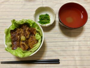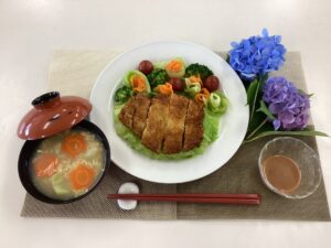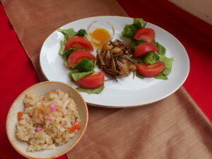 フードデザインの授業を通じて郷土料理に興味を持ち、試行錯誤を繰り返しながらアレンジレシピを考案。兵庫県加古川市周辺で親しまれる郷土料理「かつめし」を健康的にアレンジした鮮やかな一皿です。