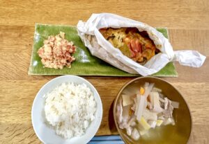 授業を通して何度も調理実習を共にしてきた仲良しチームが、子供たちでも食べやすい食材を使った郷土料理を作ろうと決意してアレンジレシピを編み出しました。山口県民のソウルフード「チキンチキンごぼう」をカレイを使った柔らかな「魚魚ごぼう」にすることで、食べやすさを工夫しました。
