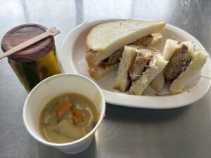 地域のレストランや道の駅での商品化を目指して農業科の食品専攻生がアレンジ郷土料理を考案。給食で食べた「味噌ころばかし」や「ざぶ汁」を幅広い世代に親しまれるようなレシピにアレンジしました。