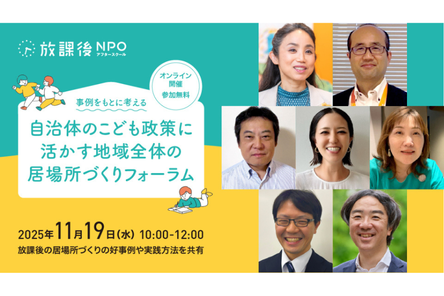 NPO法人放課後NPOアフタースクールは11月19日に、地域の子供の居場所づくりを支援する自治体職員を主な対象としたオンラインイベント「事例をもとに考える 自治体のこども政策に活かす 地域全体の居場所づくりフォーラム」を開催する。