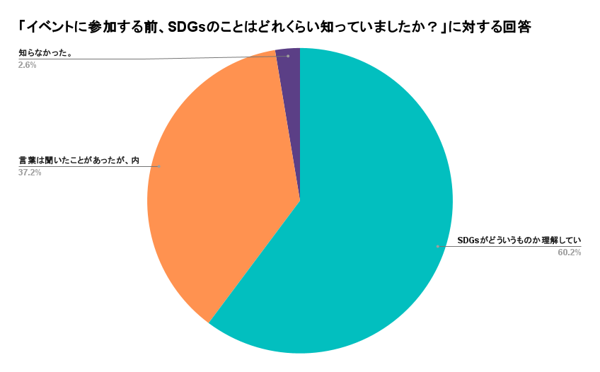 イベント参加前、「SDGsのことはあまり知らなかった」と回答した生徒は約38%だったが、イベント後には「自分が勉強するだけで貧困な人々を救えるのが嬉しい」といった具体的な社会とのつながりを実感する声が多数集まった。
