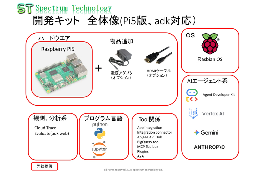 スペクトラムテクノロジーは11月18日、「はじめてのAIエージェント学習・開発キット(Pi5版、google ADK対応)」の販売を開始した。