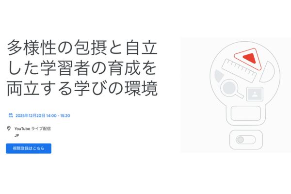 Google for Educationは12月20日に、オンラインイベント「多様性の包摂と自立した学習者の育成を両立する学びの環境」を開催する。参加無料。事前登録制。