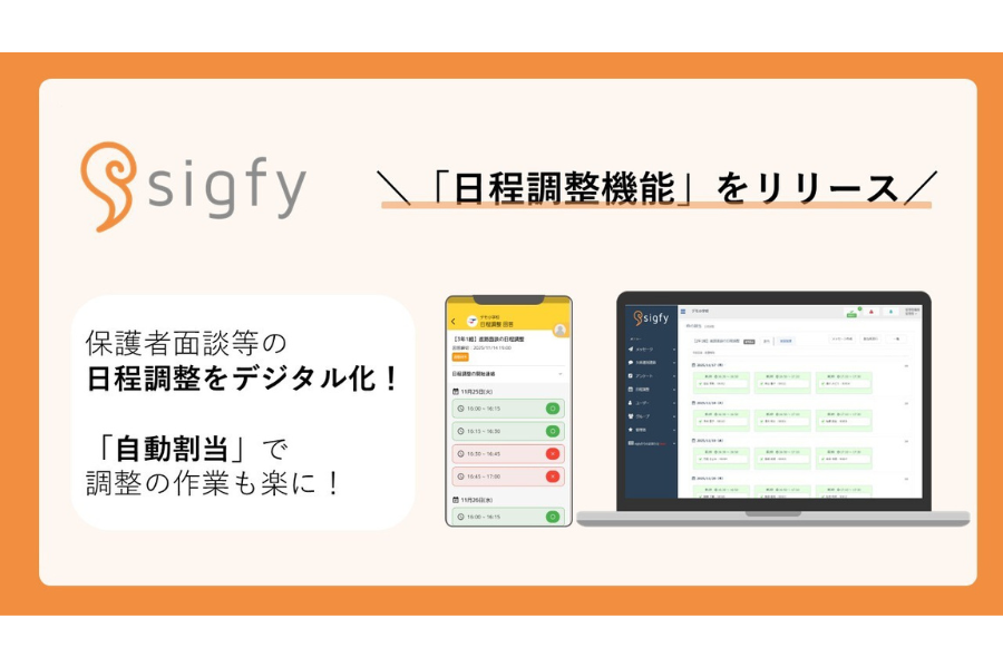 Fusicは11月21日、連絡サービス「sigfy(シグフィー)」において、保護者面談等の日程調整に利用できる新機能「日程調整機能」の提供を開始した。標準機能として利用できる。