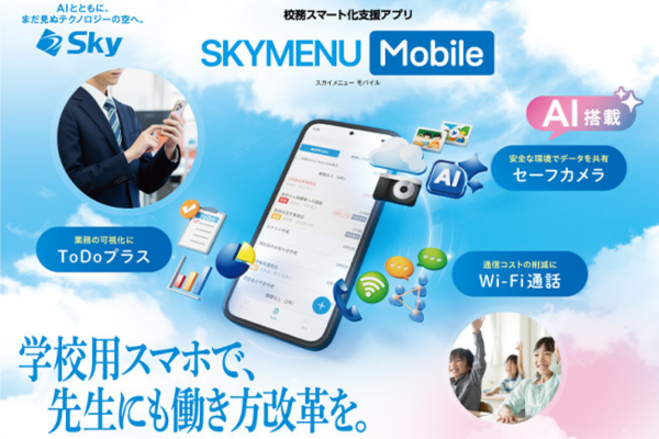 Skyは、校務スマート化支援アプリ「SKYMENU Mobile」を開発、12月26日に発売する。価格はオープン。全国の文教関係のメーカーおよび販売代理店を通して、主に小学校、中学校、高等学校、大学などを対象に販売する。