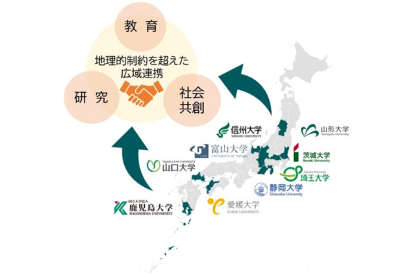 今後は、こうした教育面での取組を起点として、オンラインや遠隔システムを積極的に活用し、地理的制約を超えた広域連携の特色を一層強化する。これにより、研究面では分野横断的な共同研究や設備・人材の共同利用の促進、社会共創の分野では地域社会や産業界と連携した実践的な活動への展開などが期待される。教育・研究・社会連携を有機的に結び付け、全国規模での大学連携の新たなモデル事業を創出していくことを目指すとしている。