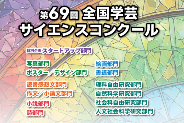 「全国学芸サイエンスコンクール」は全国の小学生・中学生・高校生の研究・アートおよび文芸の振興奨励と、その個性の育成を目的に1957年に創設されたコンクール。第69回を迎えた今年度は、国内外の学校から73,719点の応募があった。