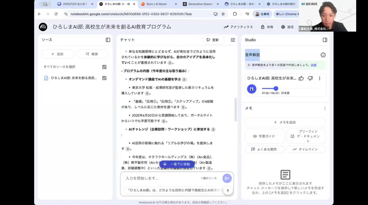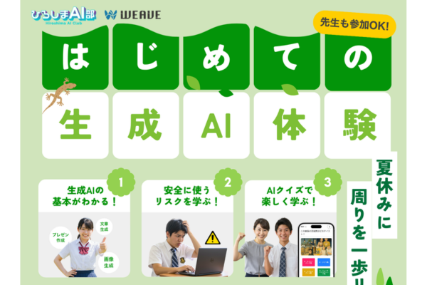 WEAVEは12月16日、広島県を始めとする産学官の取組「ひろしまAI部」と協働で、県内高校生・教員を対象にオンラインで実施した「はじめての生成AI体験イベント」の実施レポートを公開した。