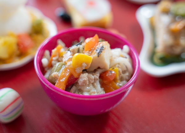 「cotote」は、子供が食事を楽しみ素材を自然と好きになるように彩りにも工夫を凝らしている。レンジで加熱しお盆にデコレーションすれば見た目も華やかなお正月プレートに