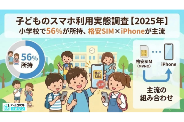 ALL CONNECTが運営する通信メディア「オールコネクトマガジン」は12月25日、小学生~中学生の子供がいる保護者300人を対象に実施したスマホ利用実態調査の結果を公表。子供のスマホは「小学生」で持ち始め(56%)、端末はiPhone(40%)、回線は格安SIM(50%超)が主流という傾向が明らかになった。