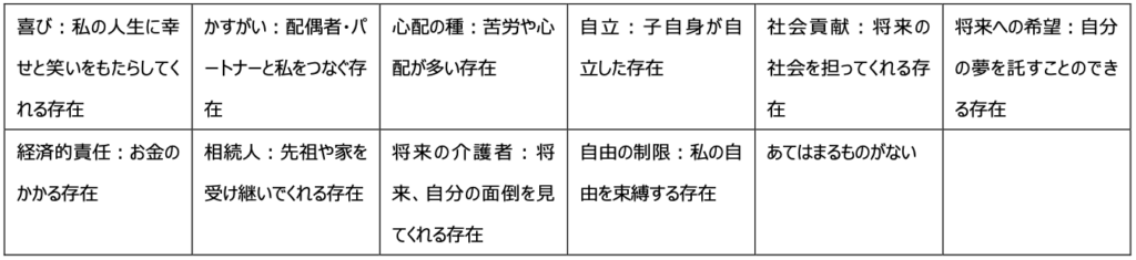 表1. 「あなたにとってお子様はどのような存在ですか」という質問の11の選択肢