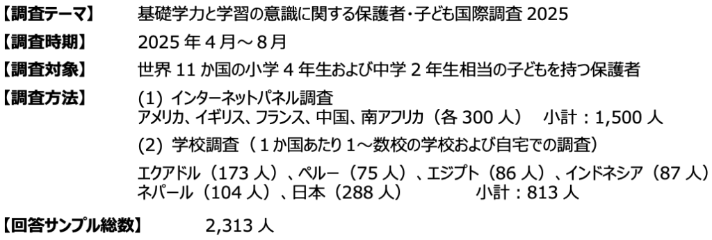 公財・スプリックス教育財団は、基礎学力に対する意識の現状を把握することを目的に、「基礎学力と学習の意識に関する保護者・子ども国際調査2025」を実施。第6回報告となる今回は、保護者の『子供観』と『将来への期待』の国際比較に焦点を当てた。