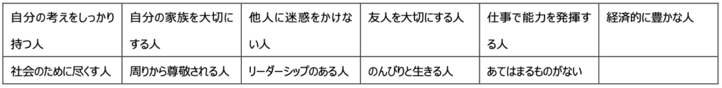 表2. 「お子様に、将来どのような人になってほしいと思いますか」という質問の11の選択肢