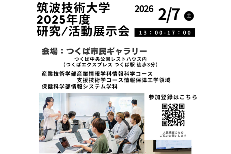 視覚障害者・聴覚障害者のための国立大学である筑波技術大学は2月7日に、茨城県つくば市のつくば市民ギャラリーにて、産業技術学部(きこえない・きこえにくい学生が学ぶ学部)と保健科学部(みえない・みえにくい学生が学ぶ学部)の情報技術系3学科・コースによる合同研究/活動展示会を開催する。