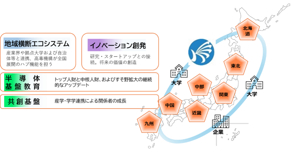 国が支援する半導体研究の中核組織である技術研究組合最先端半導体技術センター(LSTC)・産業界・拠点大学・自治体等との連携による全国展開のハブ機能