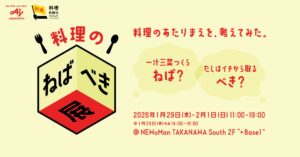 このプロジェクトの第1弾として、「一汁三菜をつくら”ねば”」、「だしは一からとる”べき”」など、無意識のうちに自分に課してしまう料理のルールを「料理のねばべき」と名付け、その実態を知ってもらうため、企画展『料理のねばべき展』を2026年1月29日(木)から2月1日(日)の4日間、東京・港区のNEWoMan TAKANAWAにて期間限定で開催する。