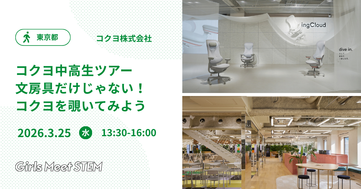 「好奇心を人生に」を掲げるコクヨの最新オフィスを見学。商品開発やデザインなど多様な分野の女性社員と交流し、STEMの学びがキャリアにどうつながるかを知る▶︎詳細・応募