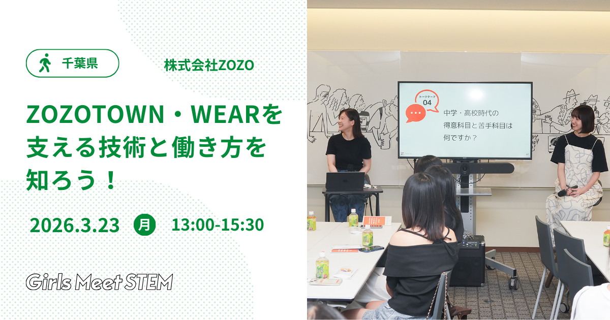 ZOZOの世界観が詰まった西千葉本社を見学し、ファッション計測技術などを体験。女性エンジニアとの交流を通じて、ファッション×テクノロジーの仕事の面白さを知る▶︎詳細・応募